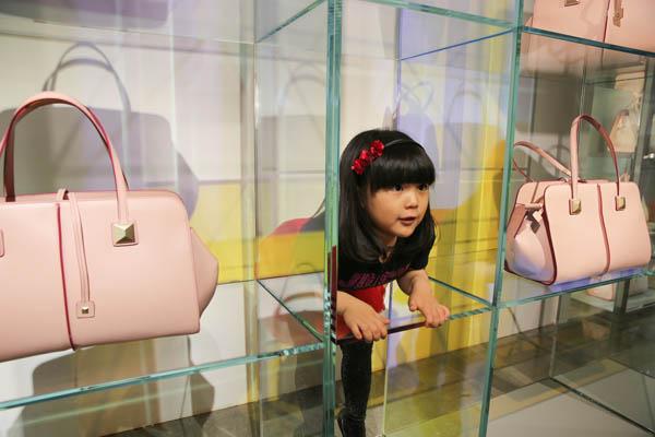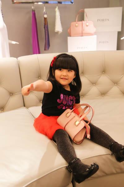 一家三口很快就開始購物,在Ports 1961店鋪里,Angela不改乖萌本色,剛開始逛店便一眼相中了mini款的淺粉色0包包,這可是創意總監Fiona Cibani前幾日剛剛在米蘭發布的Ports 1961首款手袋作品——0 Bag。辣媽李湘也是立馬挽著10號手提包擺起POSE,真是母女連心。愛不釋手的Angela馬上物盡其用,往包包里塞滿了糖果,0 Bag瞬間變身名副其實的糖果包!