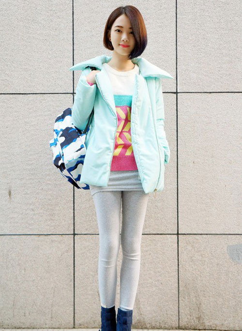 顏色超正的棉服搭配撞色毛衣,走的好挑眼!最近天氣一下子就變好冷,感覺已經很不適應了,怕冷的人傷不起吖!不多備一些這樣的棉服怎么行,重點還要美美的,哈哈!藍天白云雙肩包也很給力!可愛爆了!還有前天提起的襪子,超值的,而且質量絕對沒話說,好保暖啊,護腳必備。